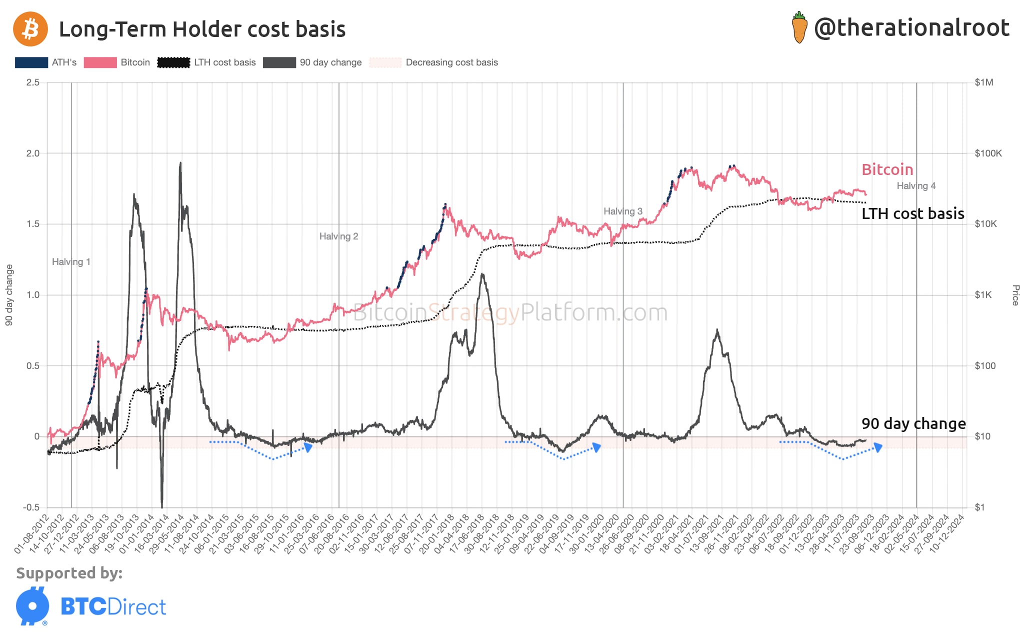 In the chart below, we observe two metrics: the LTH cost basis and the 90 day change of that cost basis. For analysts and investors with a long-term view, these metrics prove invaluable. Both metrics are now live available on the 👉 Platform!